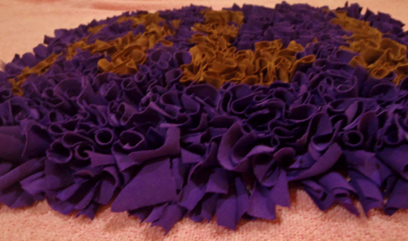 La parte de arriba de la alfombra son pedazos de tela pasados por el tejido y amarrados con un simple nudo.