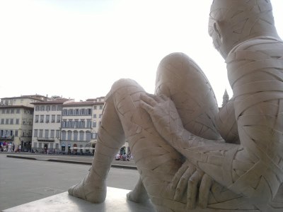 Tarde ya, luego de horas de conversación emprendemos el regreso rumbo al Ponte Vecchio ya que a esta hora, las siete de la tarde, hay música en vivo. En el camino nos cruzamos con unos Hari Crishna que caminan cantando, con micrófono en mano y carrito con parlante, esperando quizás enrolar a más de algún turista en su grupo. Se saben observados y según veo les gusta esto de mezclarse con todo este mar de gente sintiéndose diferentes. A estas alturas, los turistas somos solo eso, parte de un mismo grupo de gente y ellos los son diferentes.