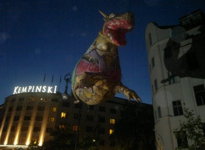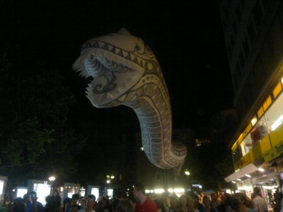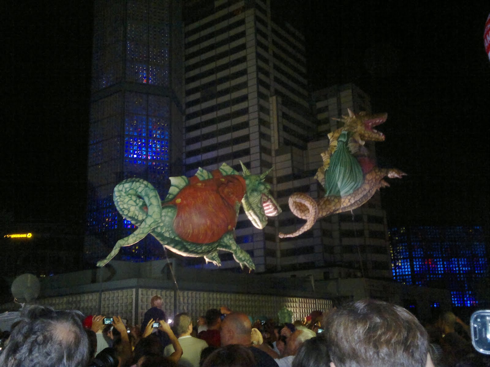 Hay una exposición de osos de todos los países, no podía faltar Chile, que lo pintaron con algo que aun trato de entender que relación tiene con Chile y luego un desfile de dragones iflables.