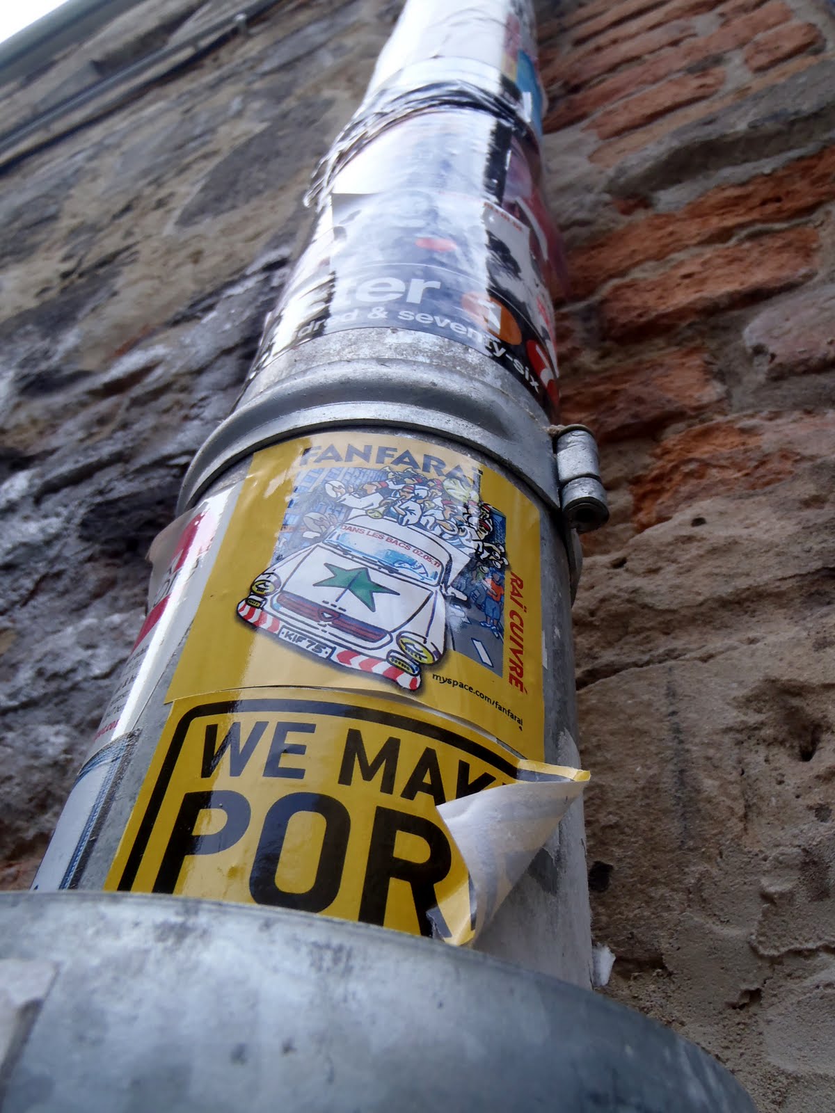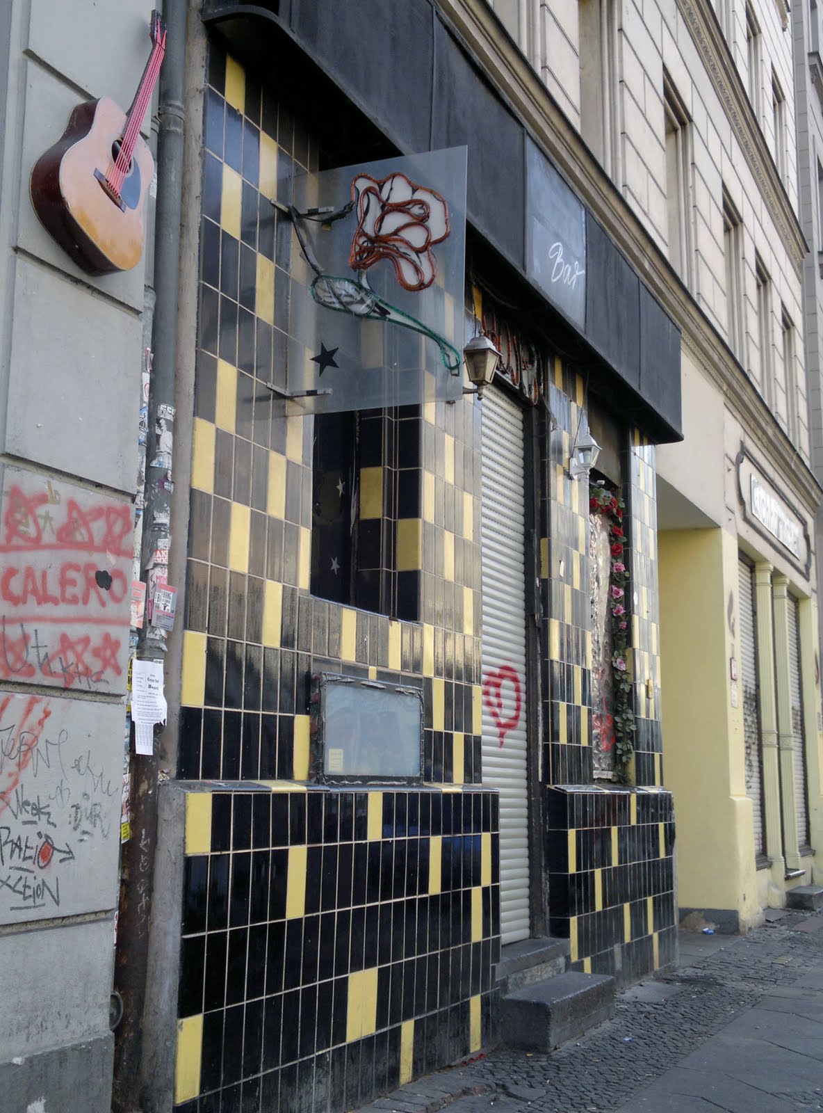 Estas cortinas metalicas fueron pintadas en una noche y a mano alzada, sin stencil.