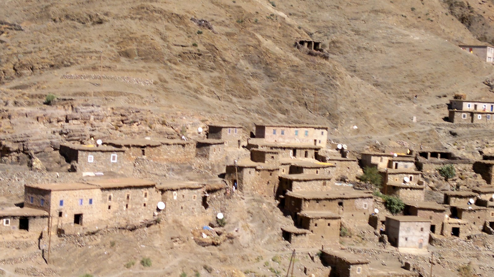 En el cruce de las montañas las elevadas cumbres, frecuentemente nevadas, nos saludan despidiendo el palmeral de Marrakech. En el camino me pasó lo que extrañamente no me sucedió en Maldivas de tanto andar en bote… me maree, nada que hacer me fui casi acostada todo el cruce de las montañas. Apenas vi los pequeños pueblos bereberes se cuelgan en los abismos, con casa del mismo color de la tierra pero si me alcanzó el animo para sacar fotos.