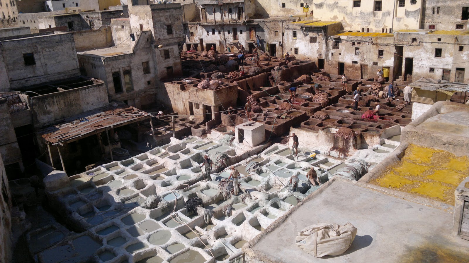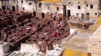 Otra cosa impresionante son las curtiembres. El olor casi insoportable. Es tanto que parta entrar a la tienda y ver desde el mirador el proceso de teñido del cuero te pasan hojas de menta fresca para que la vayas oliendo, si no, es invivible. Terminas con las hojas metidas en la nariz ya que las manos las tienes ocupadas viendo la cantidad de productos de cuero que te ofrecen para vender.