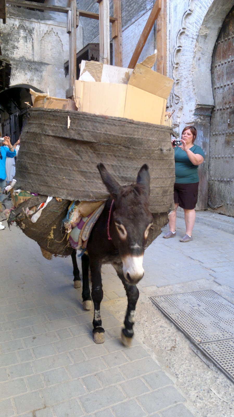 De las cosas lindas, los burros!!! lleno de burros que es el único medio de transporte que entra por esas callejuelas. Ya los habíamos visto en el camino a Fez pero acá de cerquita vemos sus caras hermosas. Ni hablar aquí de protección animal eso si, es una palabra o un pensamiento que ni siquiera pasa por la mente de los marroquíes pendientes de su difícil supervivencia.