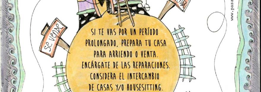 Año Sabático Mini Guía - Prepara tu casa 1 año antes 1 Si te vas por un tiempo prolongado prepara tu casa para venta o arriendo. 2 Encárgate de la pintura y las reparaciones. 3 Considera la posibilidad de hacer home exchange,o housesitting. Ocho meses antes 1 Limpia, bota la basura y deja tu casa… Sigue leyendo Año Sabático Mini Guía – CASA- Parte 5 de 6